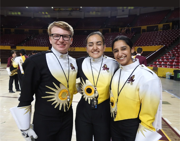 The Sun Devil Marching Band, also known as "The Pride of the Southwest," began under Lillian Williams in 1915, when she founded and funded the new Tempe Bulldogs Marching Band. After a short disbandment during WWI, so our band members could take part in defending our country, our band came back stronger than ever, now having close to 400 members in the 21st century. The SDMB has appeared in numerous bowl games and competitions throughout the last century, even taking part in supporting our teams in men's and women's basketball, volleyball, and hockey games at Arizona State University. The SDMB is also the first PAC-10 school in history to be awarded the Sudler Trophy, a recognition of elevated musical standards, innovative marching techniques, and high national respect. Brothers of Kappa Kappa Psi, as well as Membership Candidates of our ASU Chapter, have the opportunity to hike A Mountain (an ASU landmark) once a year during our recruitment season with an SDMB veteran so we may better understand our origins as a musical community!